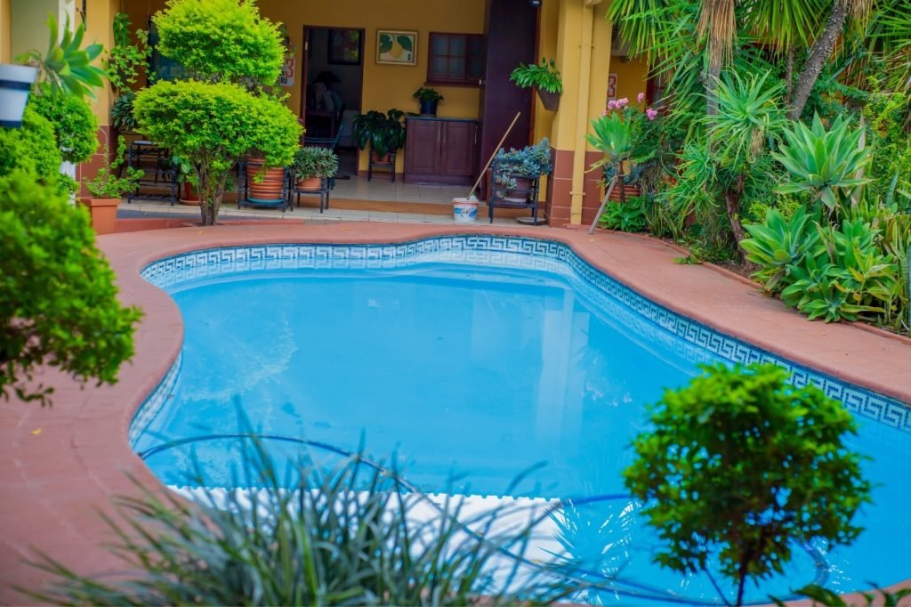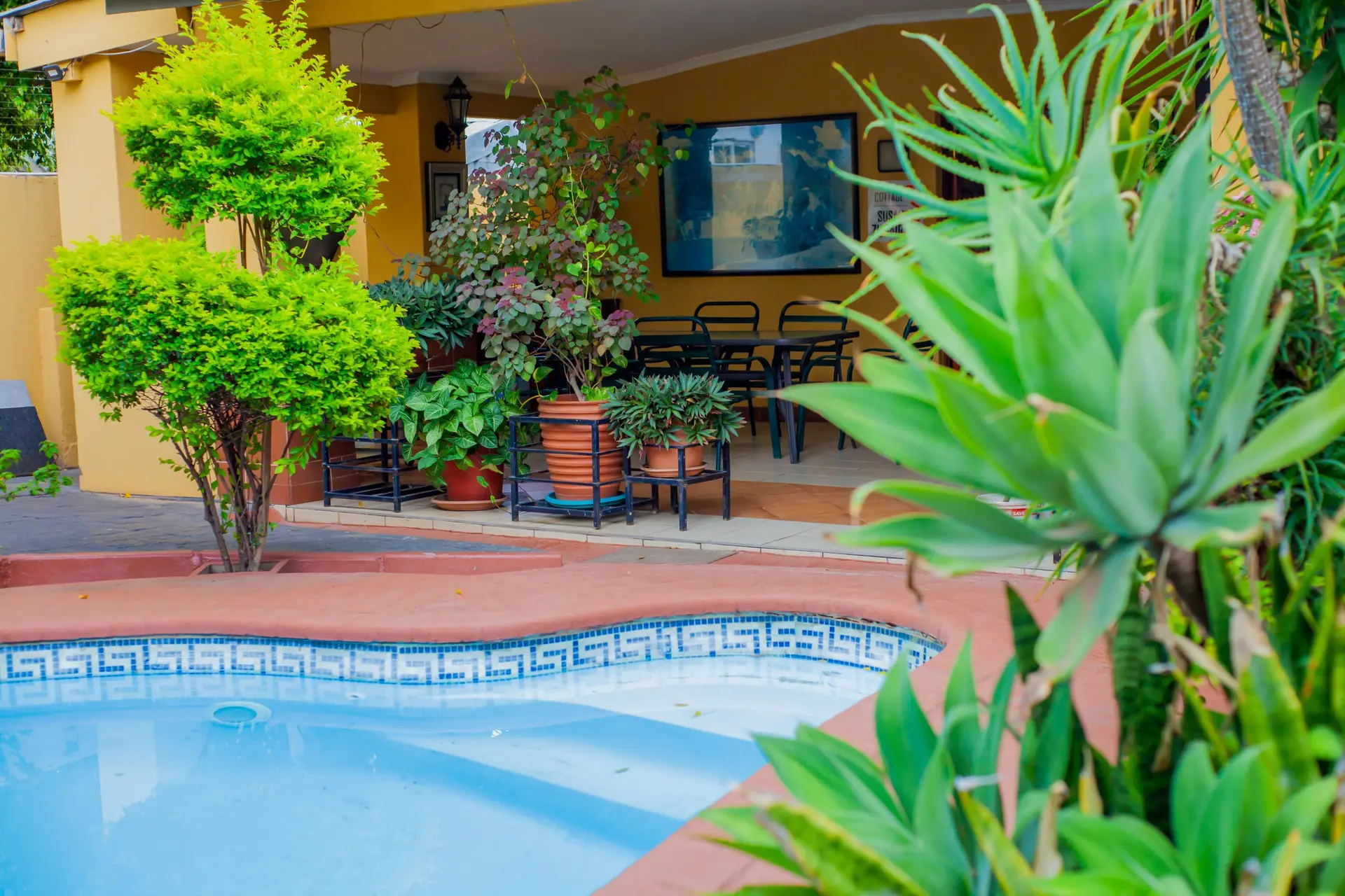 The pool is shared among guests but designed for privacy, with ample space and seating areas for relaxation.